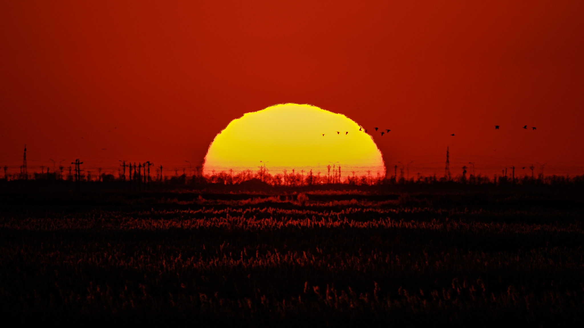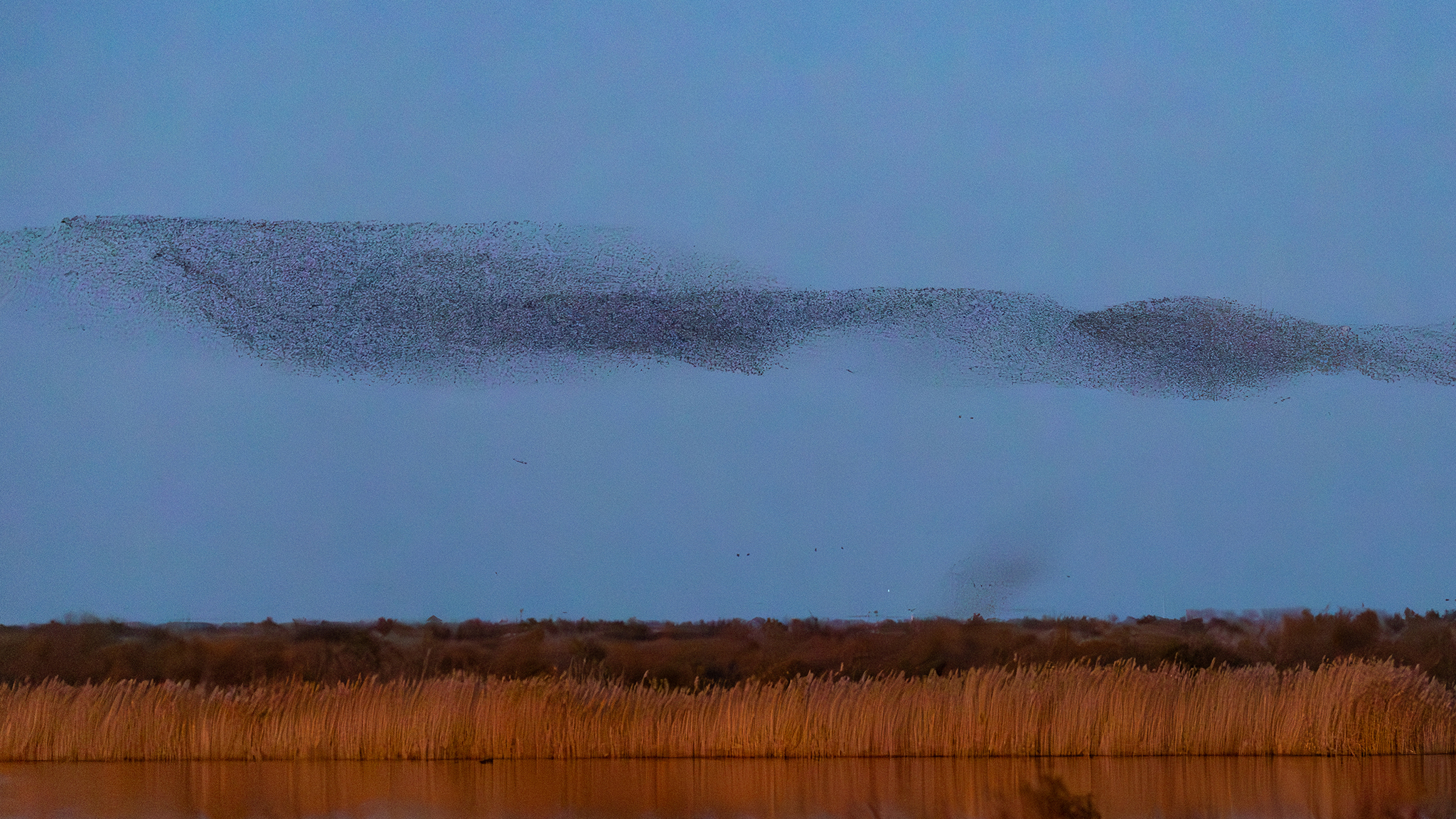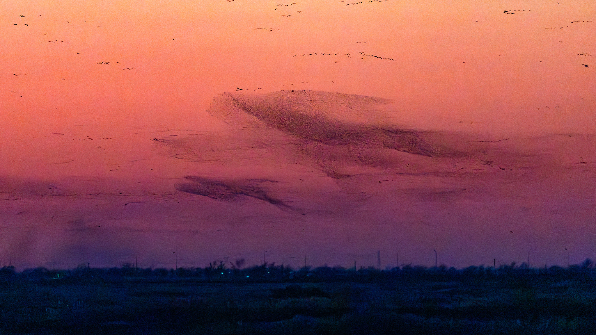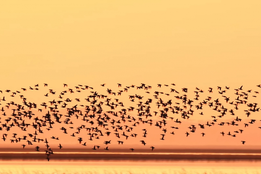 冬日的黄河三角洲湿地,正迎来一年中最壮观的景象。数万只候鸟在天空中集结翻飞,形成气势磅礴的“鸟浪”,与天际线交相辉映,构……